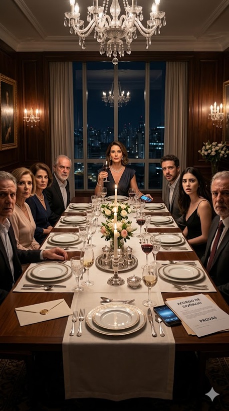 A mesa, cuidadosamente posta com louças finas, velas aromáticas e flores brancas, parecia cenário de uma comemoração elegante — não de um divórcio iminente.