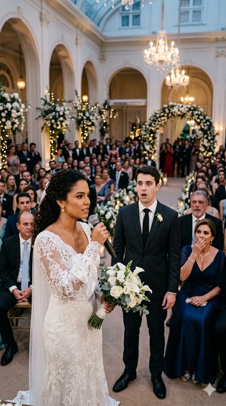 Uma hora antes da cerimônia começar, eu —Camila Andrade— estava sozinha no longo corredor de um hotel elegante no centro do Rio de Janeiro. O vestido de noiva branco apertava meu peito, e o som distante de um samba suave ecoava pelo salão, misturando alegria com um estranho vazio dentro de mim.