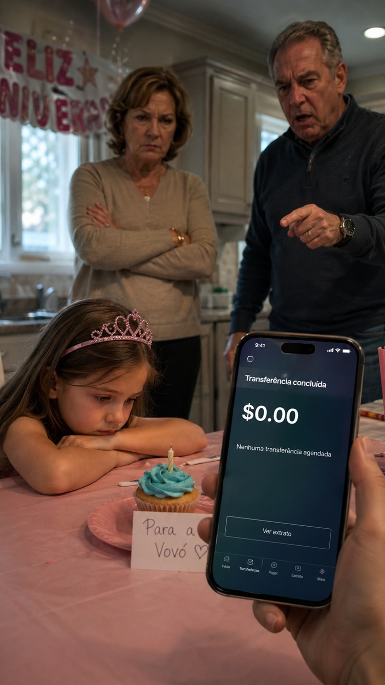 Eu continuei me movendo. Servi suco. Cortei bolo. Ajustei tiaras. Por fora, era uma festa de sete anos. Por dentro, eu contava cada minuto como prova.