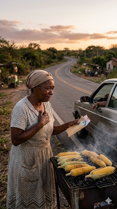 “Escuta… essa fase difícil vai passar. Muito em breve, a senhora não vai mais estar aqui, na beira da estrada, assando milho. Seus filhos vão crescer, vão vencer… e vão te dar uma vida tão boa que a senhora vai esquecer esses dias de sofrimento.”